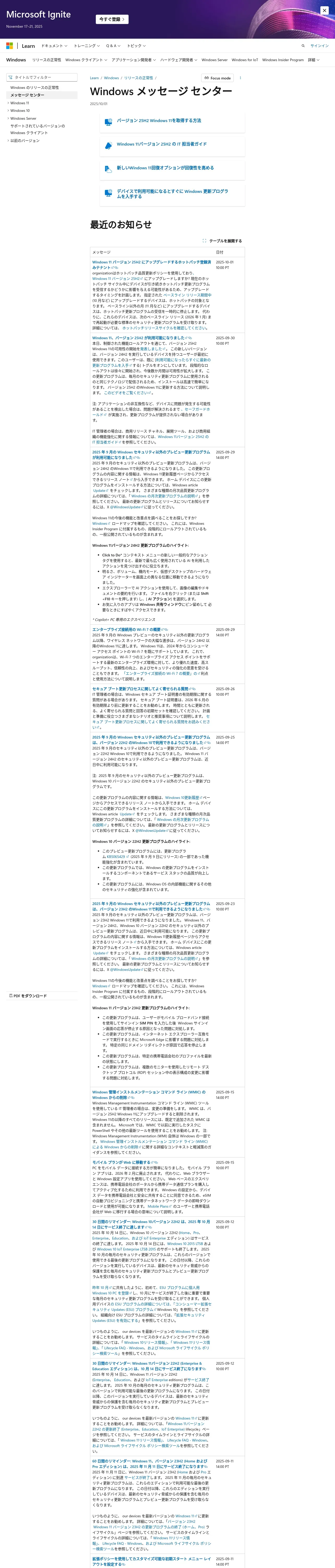 https://learn.microsoft.com:443/ja-jp/windows/release-health/windows-message-center