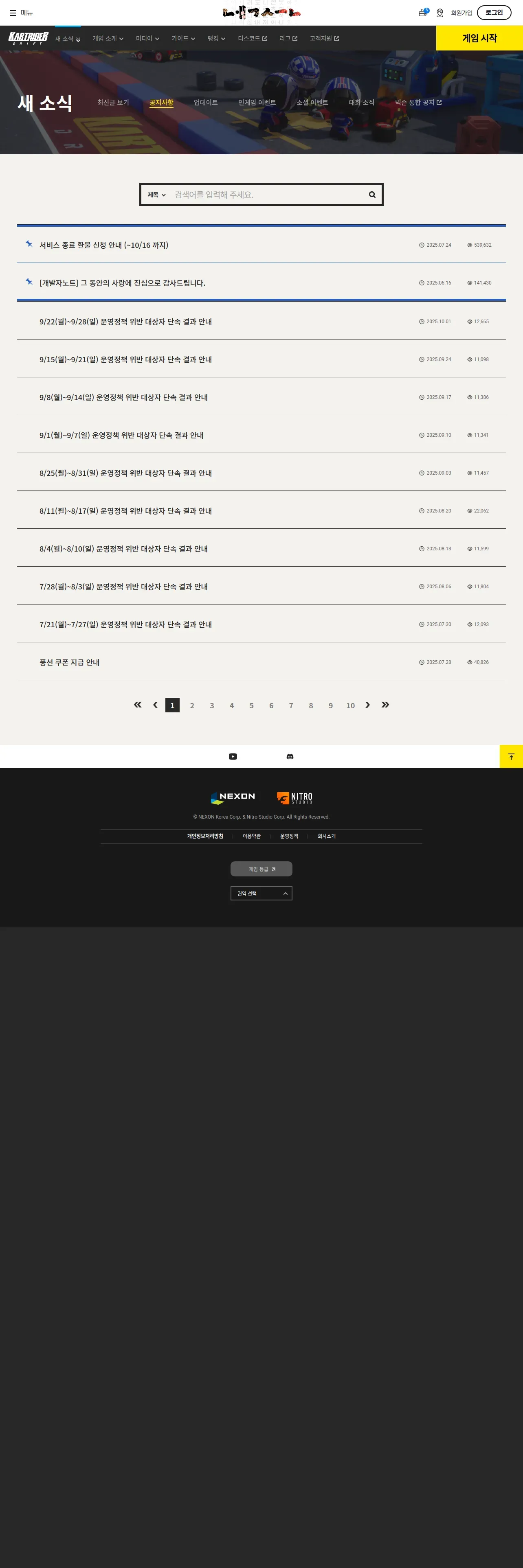 https://kartdrift.nexon.com:443/kartdrift/ko/news/announcement/list