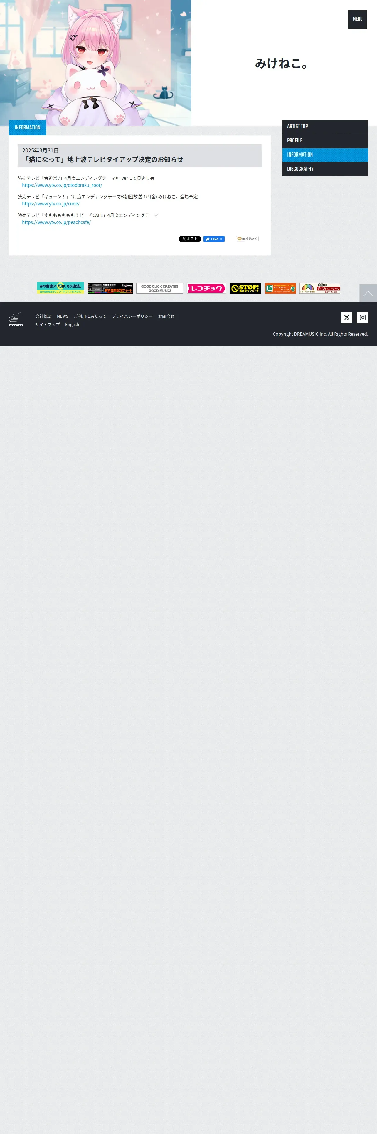 https://dreamusic.co.jp:443/artist/mikeneko/41321.html