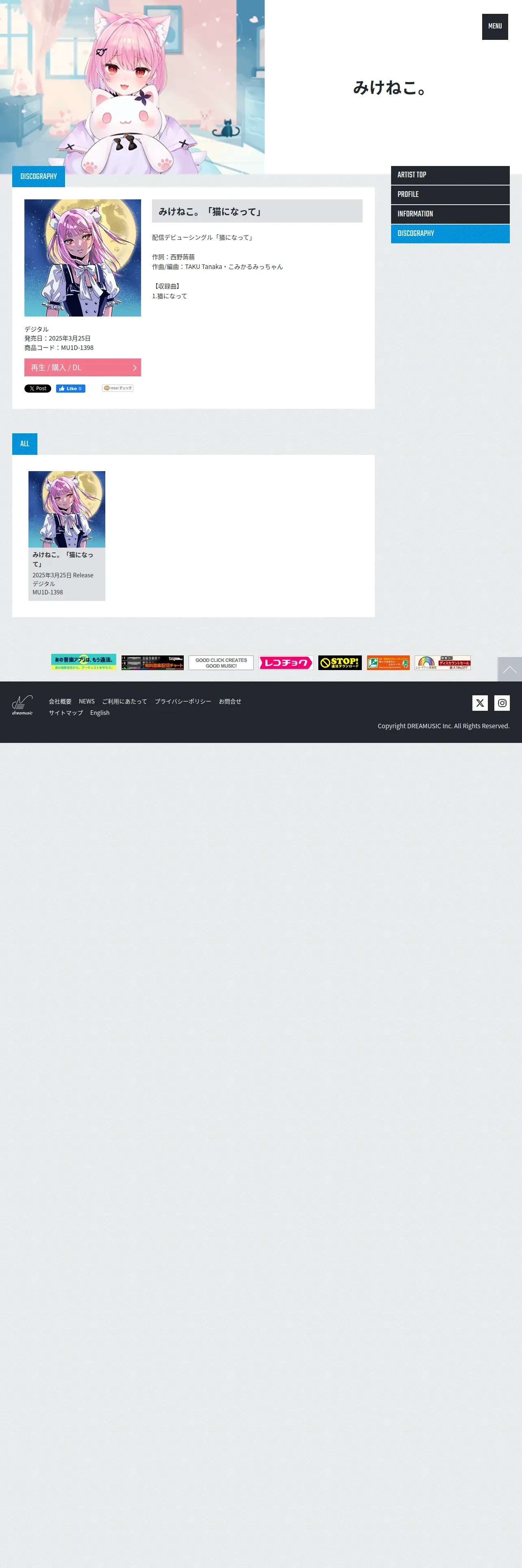 https://dreamusic.co.jp:443/artist/mikeneko/41304.html
