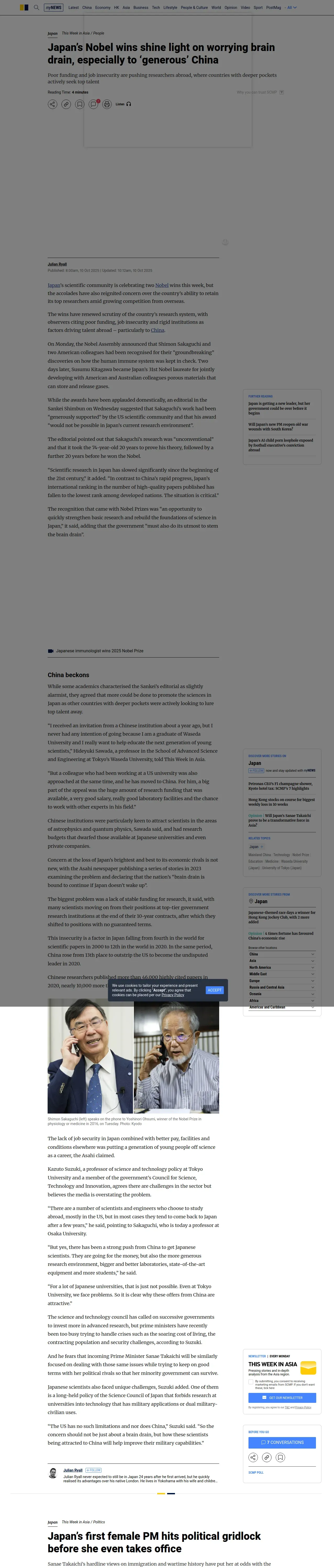 https://www.scmp.com:443/week-asia/people/article/3328351/japans-nobel-wins-shine-light-worrying-brain-drain-especially-generous-china