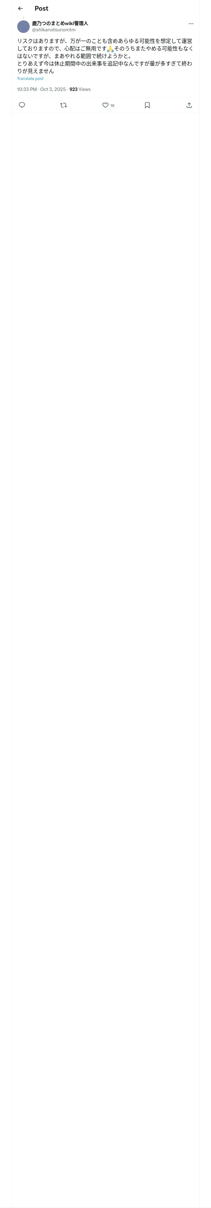取得元URL: https://x.com:443/shikanotsunomtm/status/1974105518416580970
