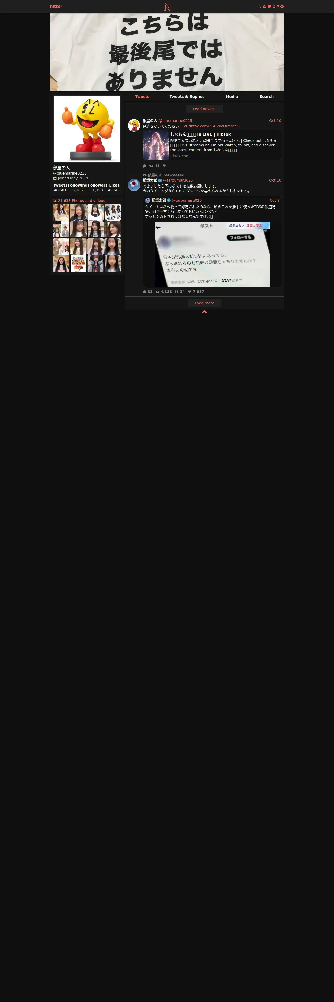 https://nitter.net:443/bluemarine0215?cursor=DAAHCgABG3AtC8s___MLAAIAAAATMTk3Njg1MTMyODUzOTQ2MzgwMwgAAwAAAAIAAA
