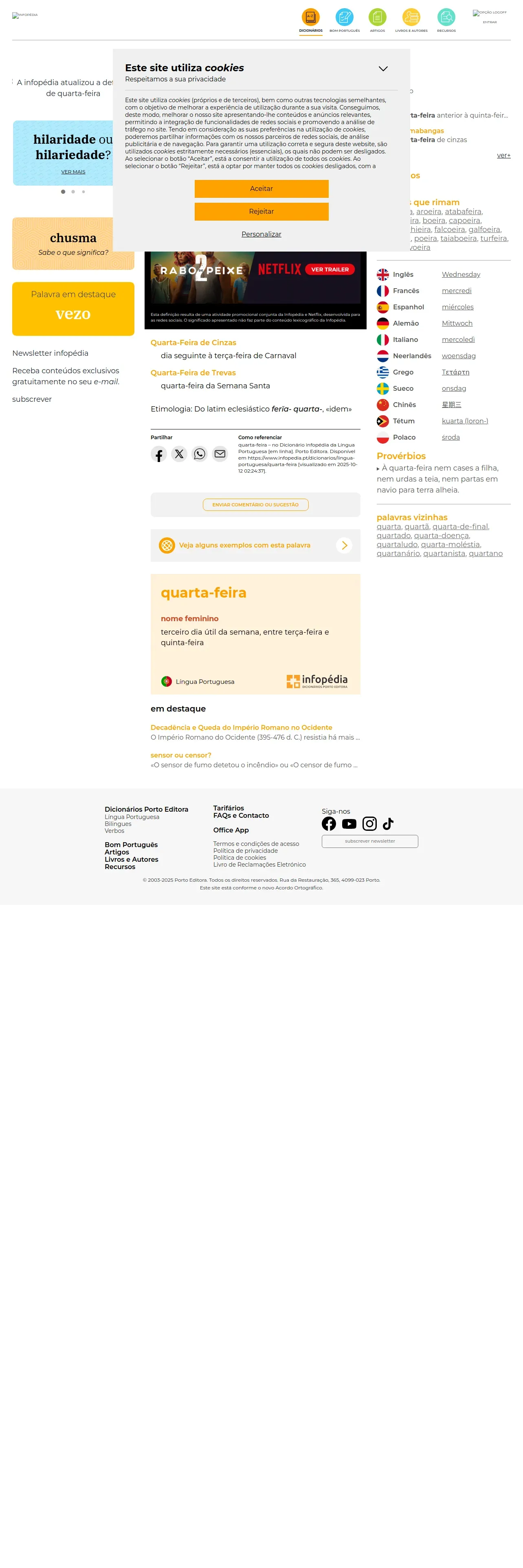 https://www.infopedia.pt:443/dicionarios/lingua-portuguesa/quarta-feira