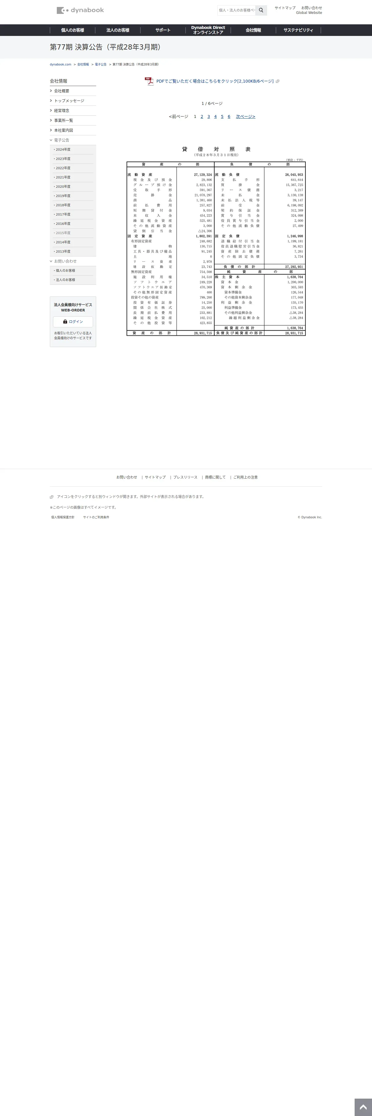 取得元URL: https://dynabook.com:443/about-us/press/2016/kessan1.html