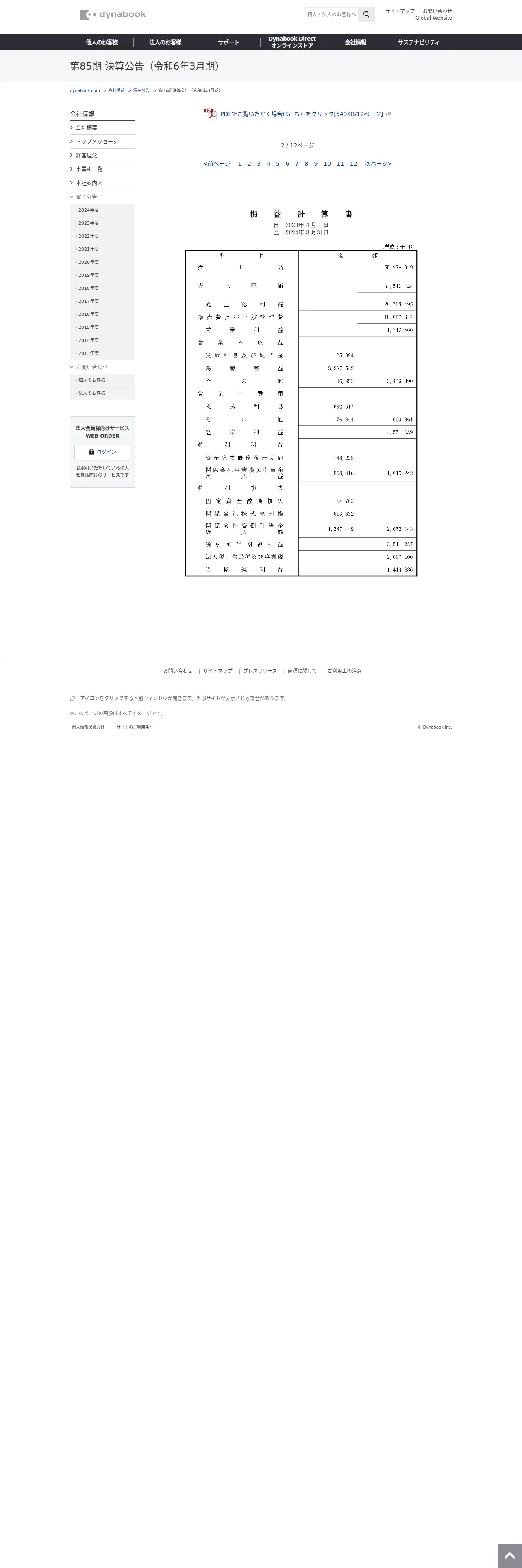 https://dynabook.com:443/about-us/press/2024/kessan2.html