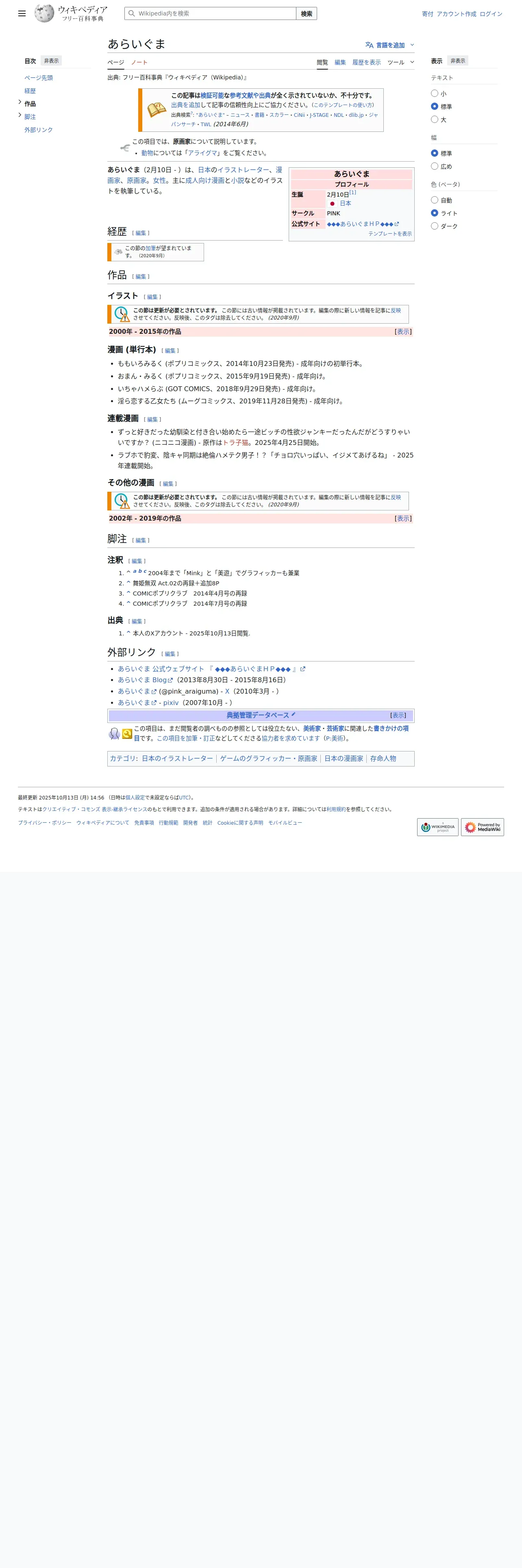 取得元URL: https://ja.wikipedia.org:443/wiki/%E3%81%82%E3%82%89%E3%81%84%E3%81%90%E3%81%BE