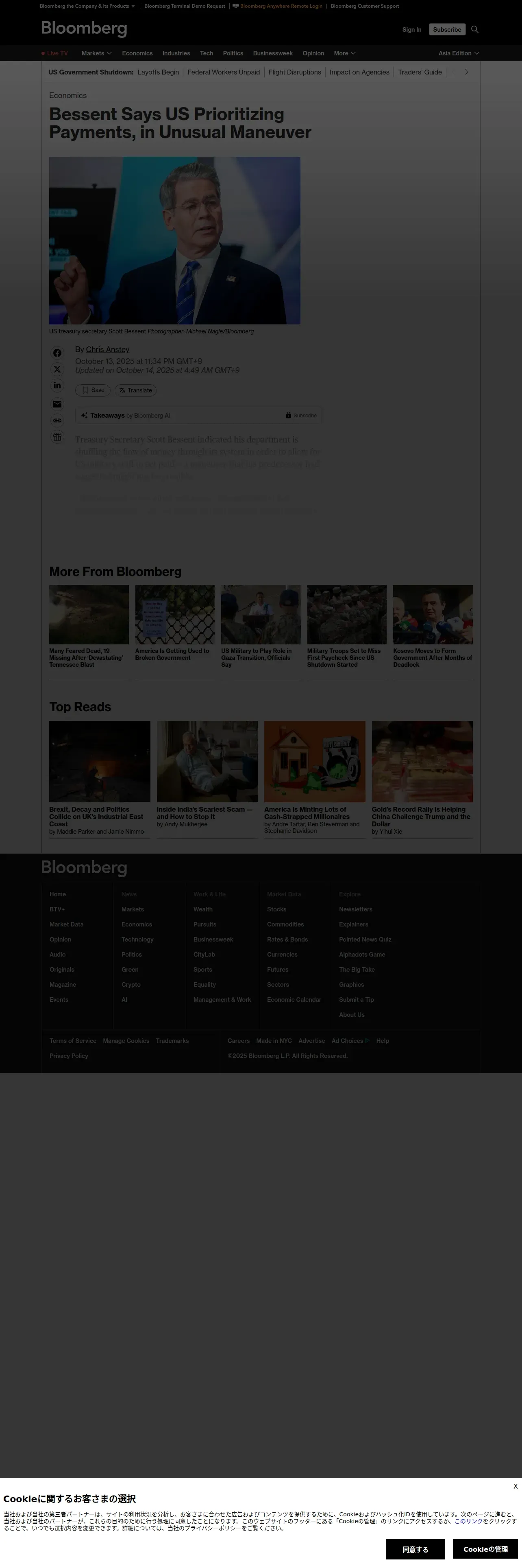 https://www.bloomberg.com:443/news/articles/2025-10-13/bessent-says-treasury-prioritizing-payments-in-unusual-maneuver?utm_source=newsshowcase&utm_medium=gnews&utm_campaign=CDAqEAgAKgcICjDi7PAKMIXduwIwhd3JBA&utm_content=rundown&gaa_at=la&gaa_n=ASWzDAj3m5IAw0UIIDpDkkHDoottFqop95uHpLbLCrDlI8ui8mVvC_fKpELTHfv8vtDb8gLl5MuOXQ%3D%3D&gaa_ts=68ed953b&gaa_sig=8qW4mTdBxZde_NWSx9gLDYCGC484gp7bX6eDQ6kvtf-67spffl1CdWfPmi2h9v5cMRhslPDX5xzzOQdeRugTew%3D%3D