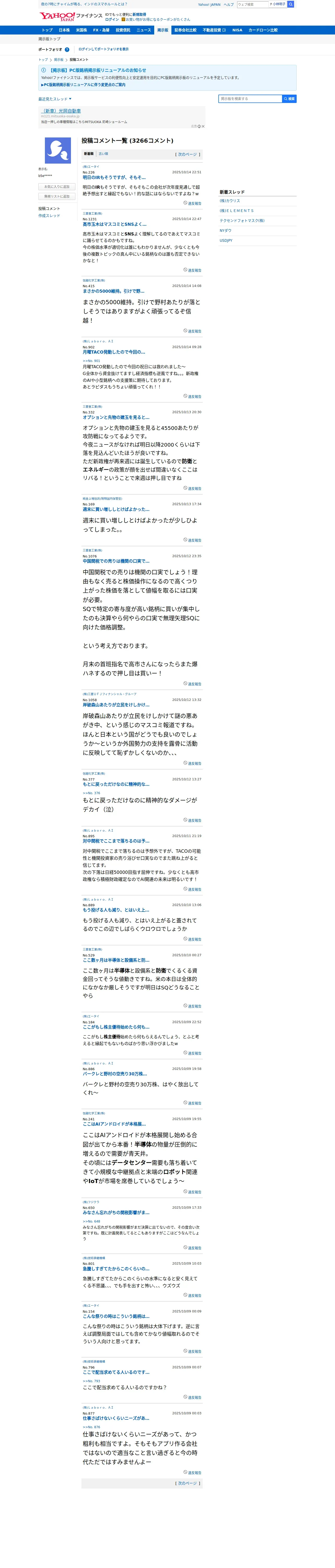 取得元URL: https://finance.yahoo.co.jp:443/cm/personal/history/comment?user=b5ee756cb7d8a610aa5861e4c44ee39690f32b8731d75971a083984b71238ee4