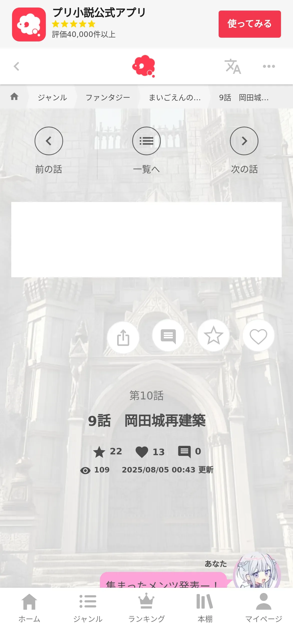 https://novel.prcm.jp:443/novel/QdxFLbcWk5BCaj1TxUnJ/chapter/yLaiUoTPchTFkGYRZnnH