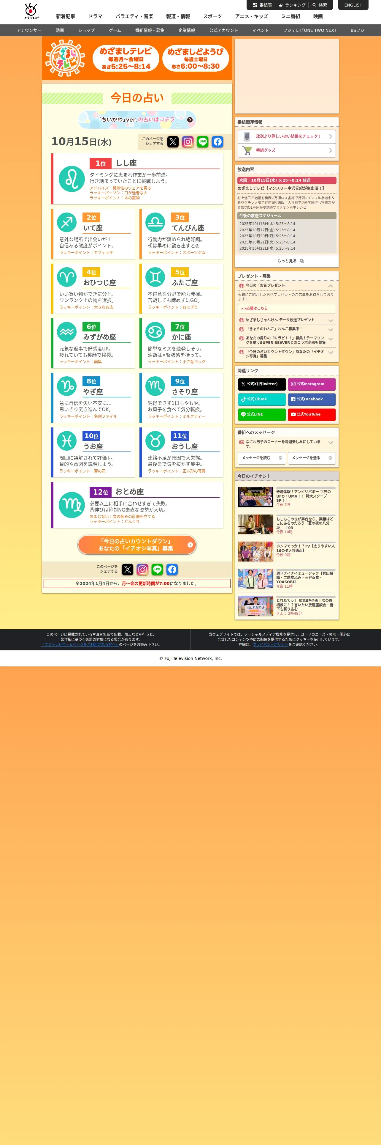 https://www.fujitv.co.jp:443/meza/uranai/index.html