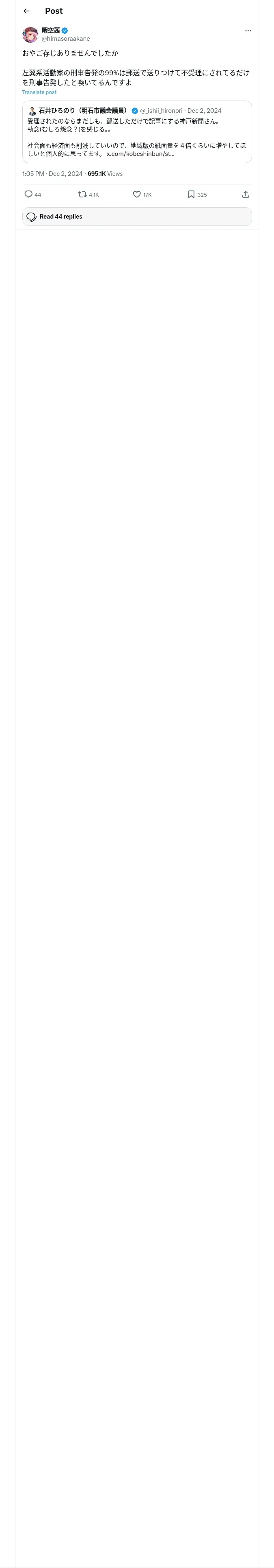 https://x.com:443/himasoraakane/status/1863434168887296064