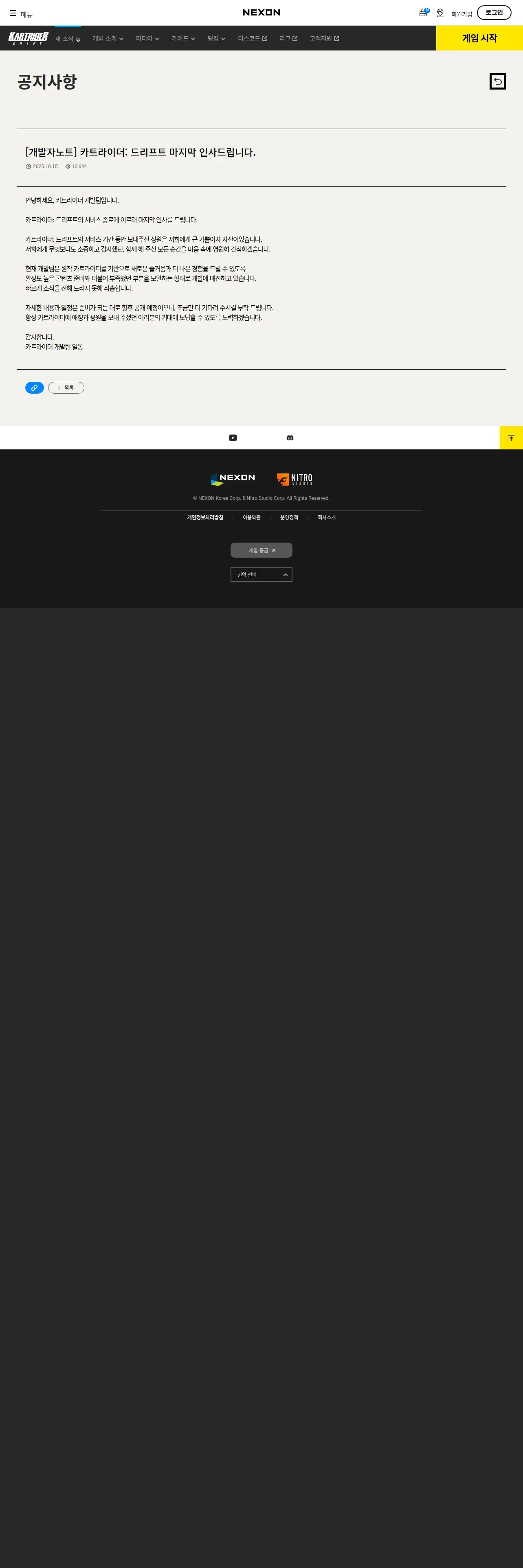 https://kartdrift.nexon.com:443/kartdrift/ko/news/announcement/view?threadId=3183317