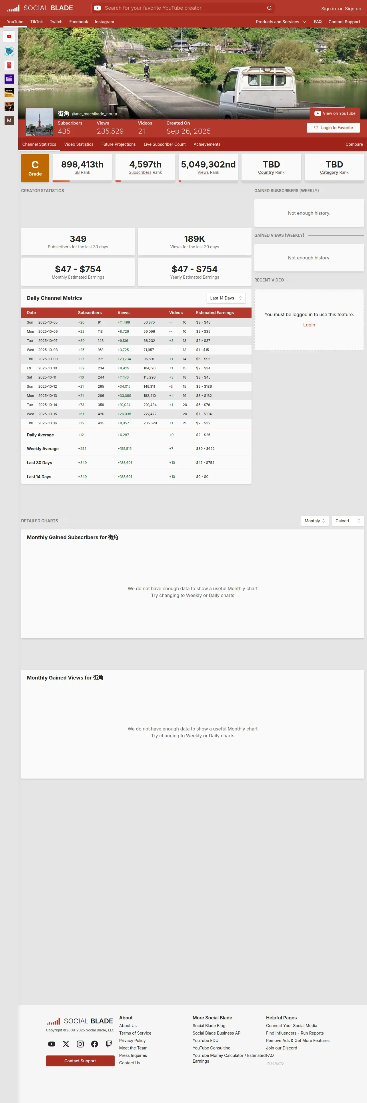 取得元URL: https://socialblade.com:443/youtube/channel/UCbT_mGmIZaI2W05NUH4wGlA