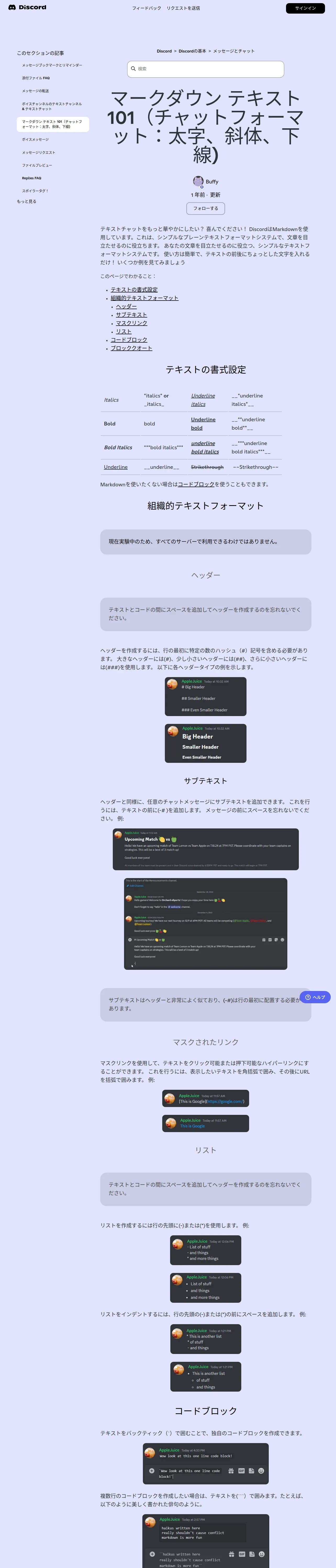 https://support.discord.com:443/hc/ja/articles/210298617-%E3%83%9E%E3%83%BC%E3%82%AF%E3%83%80%E3%82%A6%E3%83%B3-%E3%83%86%E3%82%AD%E3%82%B9%E3%83%88-101-%E3%83%81%E3%83%A3%E3%83%83%E3%83%88%E3%83%95%E3%82%A9%E3%83%BC%E3%83%9E%E3%83%83%E3%83%88-%E5%A4%AA%E5%AD%97-%E6%96%9C%E4%BD%93-%E4%B8%8B%E7%B7%9A