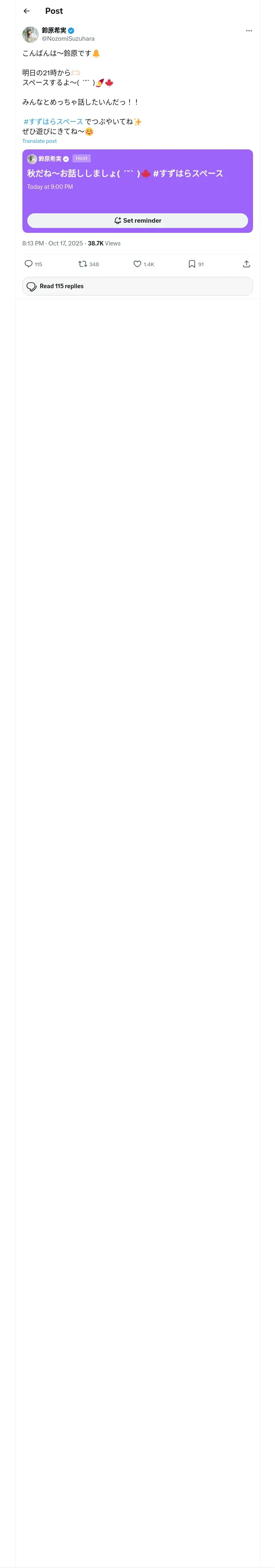 https://x.com:443/NozomiSuzuhara/status/1979143605928272214