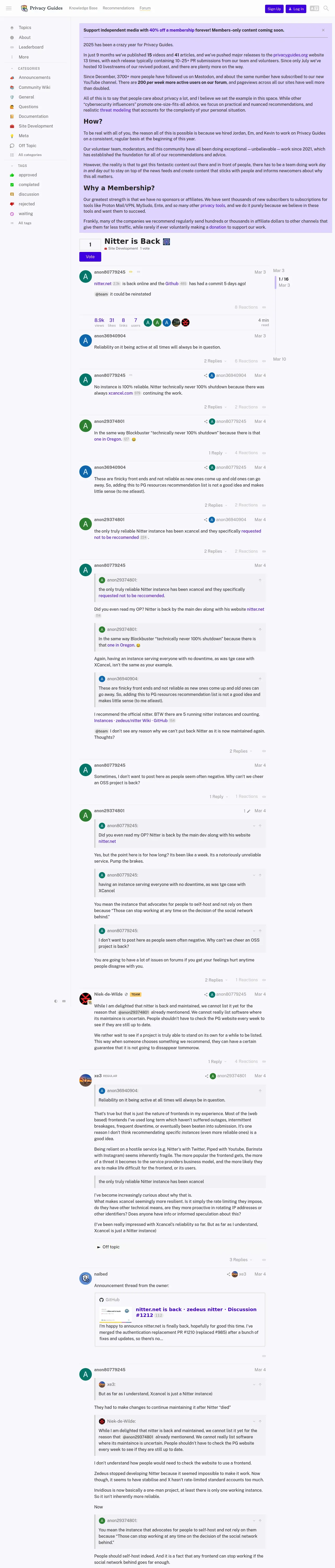 https://discuss.privacyguides.net:443/t/nitter-is-back/25424
