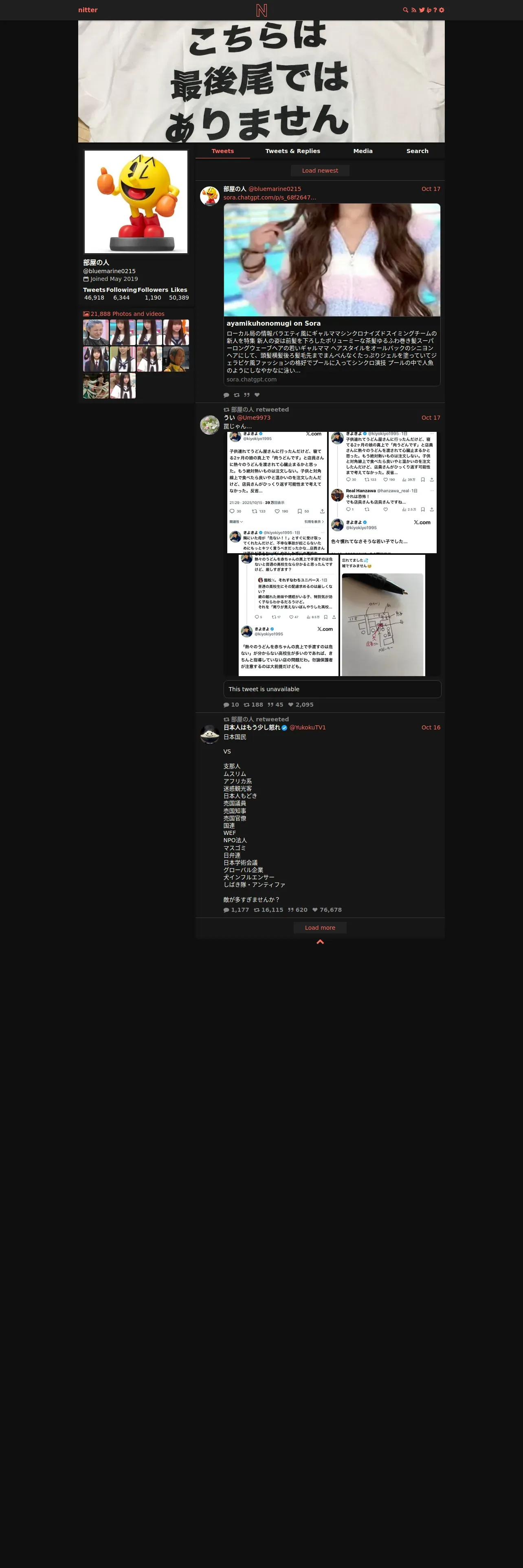https://nitter.net:443/bluemarine0215?cursor=DAAHCgABG3pgdUA__9MLAAIAAAATMTk3OTIzMTAwMDg5NjExNDgwNAgAAwAAAAIAAA