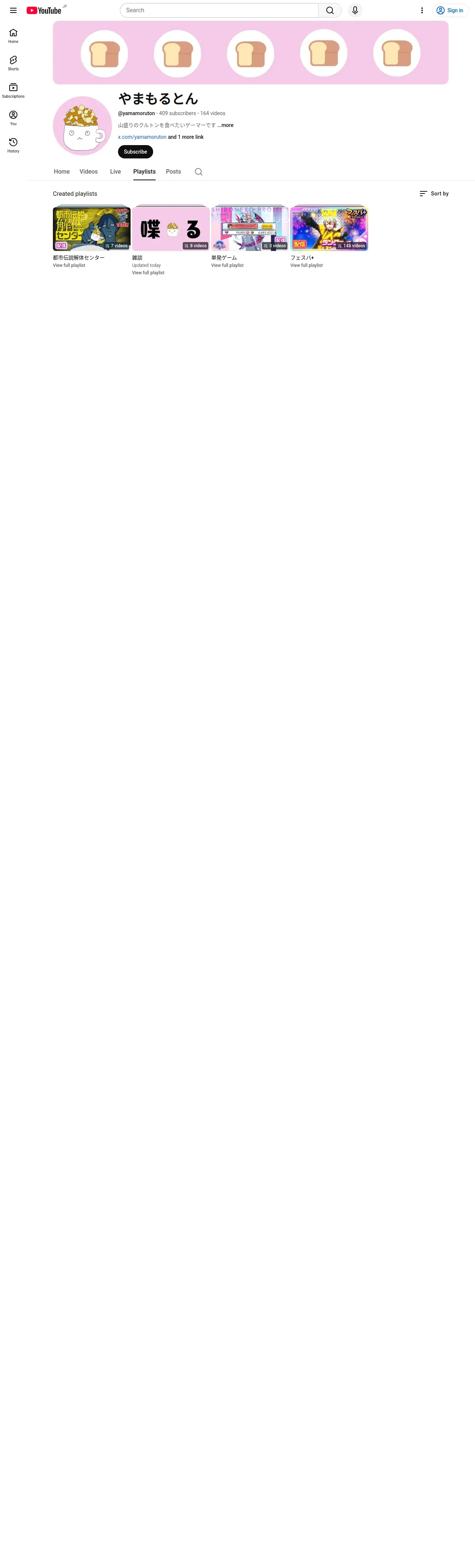 取得元URL: https://www.youtube.com:443/@yamamoruton/playlists