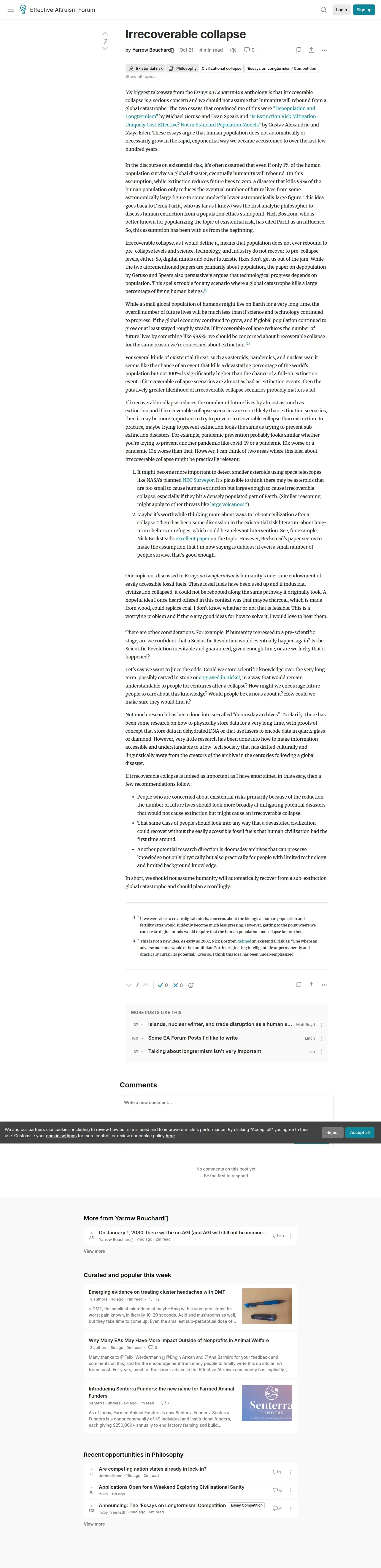 https://forum.effectivealtruism.org:443/posts/F2CbY6EAyFja25fNy/irrecoverable-collapse