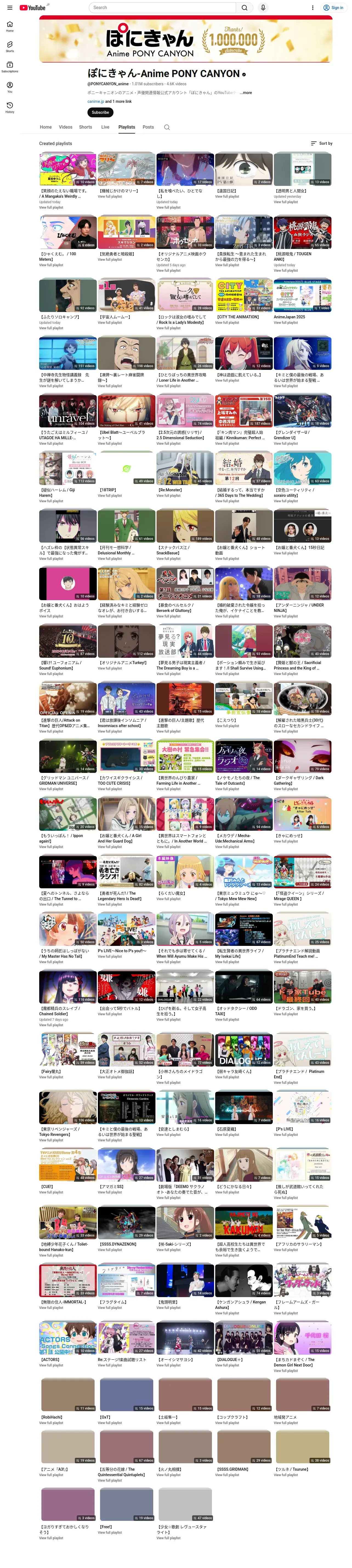 取得元URL: https://www.youtube.com:443/@PONYCANYON_anime/playlists