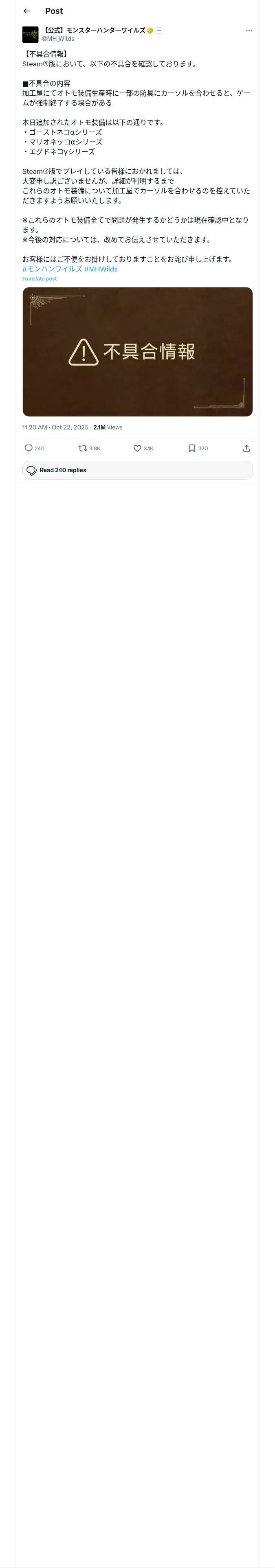 取得元URL: https://x.com:443/MH_Wilds/status/1980821513566867925