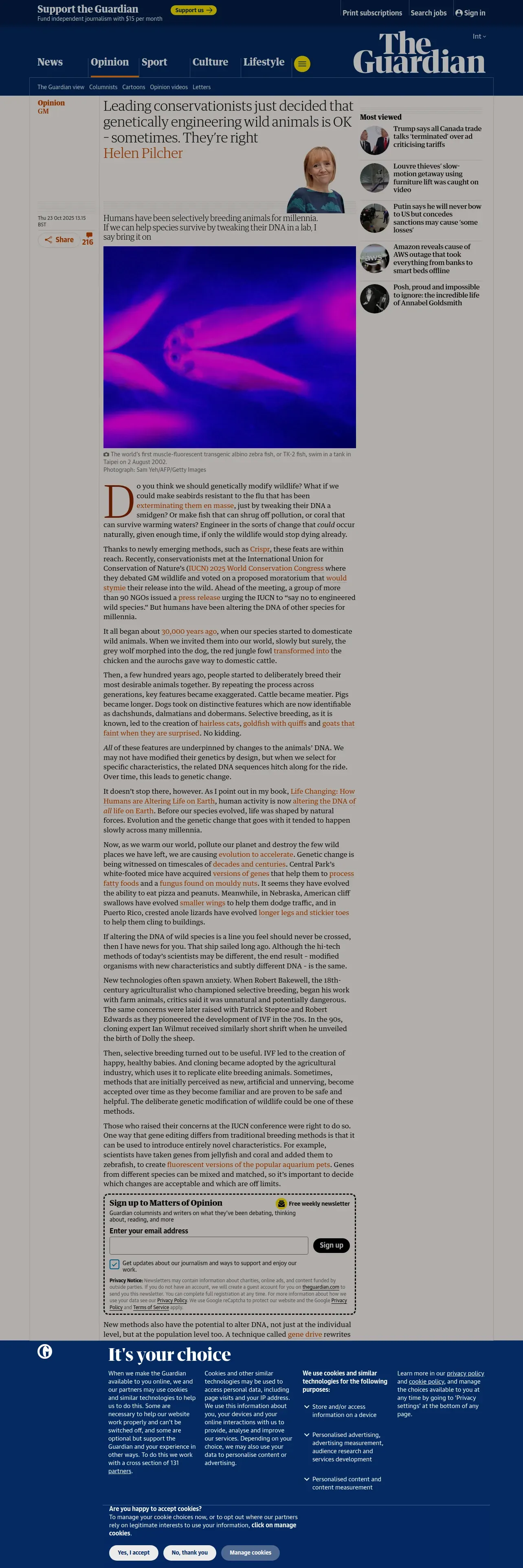 https://www.theguardian.com:443/commentisfree/2025/oct/23/conservationists-genetically-engineering-wild-animals-dna-lab
