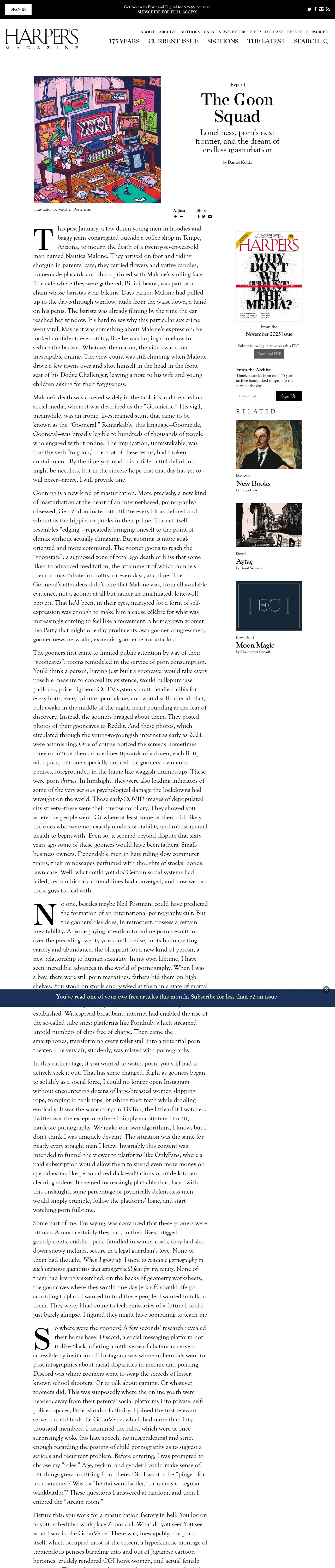 https://harpers.org:443/archive/2025/11/the-goon-squad-daniel-kolitz-porn-masturbation-loneliness/