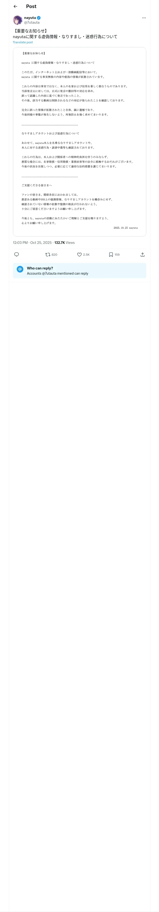 取得元URL: https://x.com:443/7utauta/status/1981919573336301673
