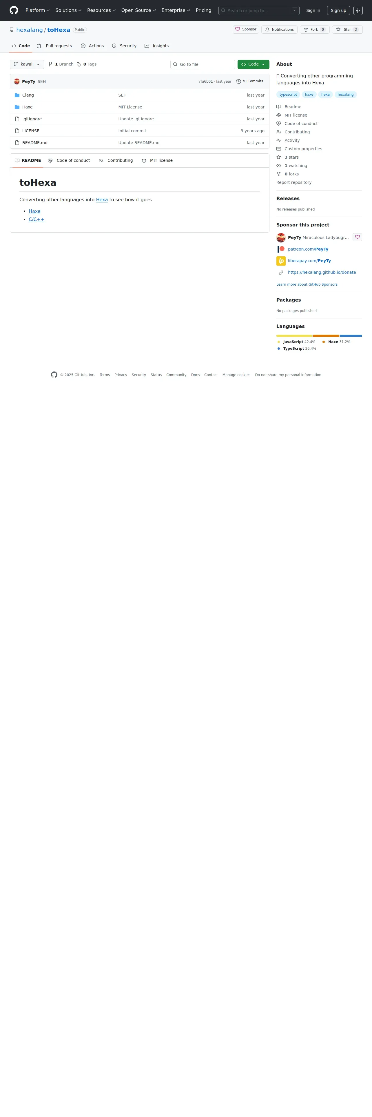 取得元URL: https://github.com:443/hexalang/toHexa