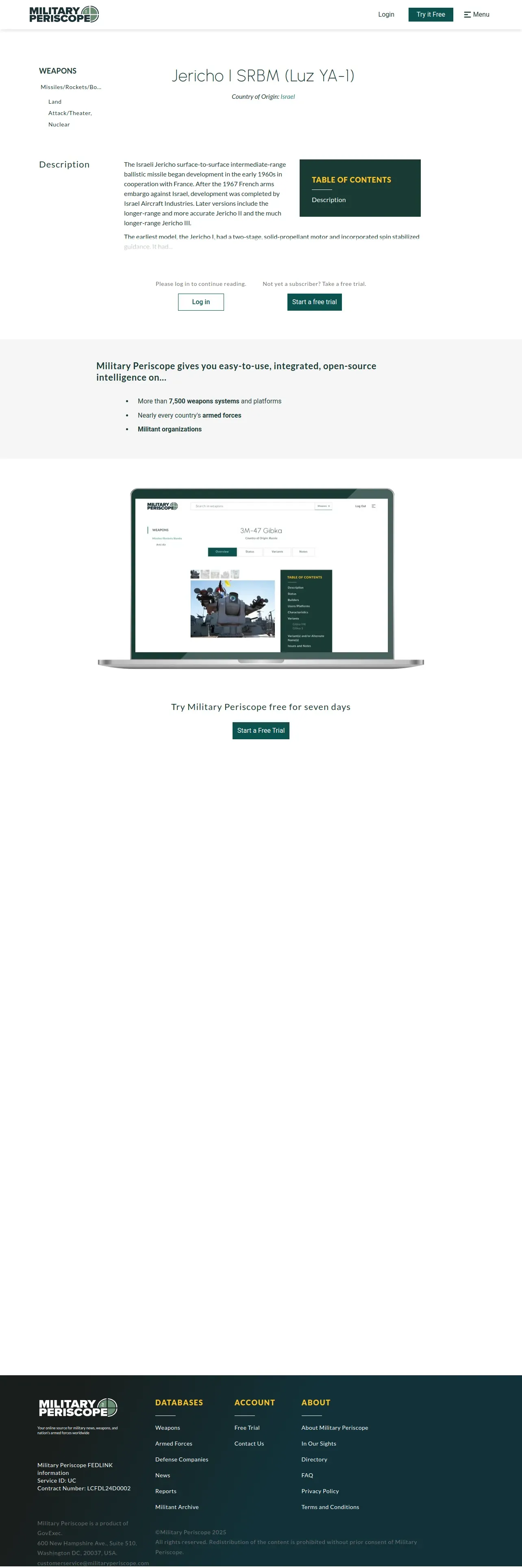 https://www.militaryperiscope.com:443/weapons/missilesrocketsbombs/land-attacktheater-nuclear/jericho-i-srbm-luz-ya-1/overview/