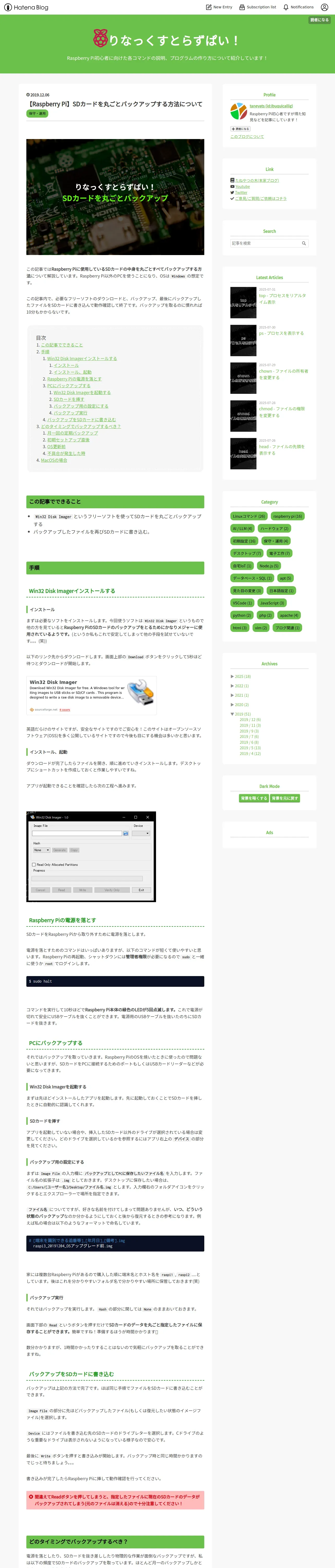 https://raspi.taneyats.com:443/entry/backup-sdcard