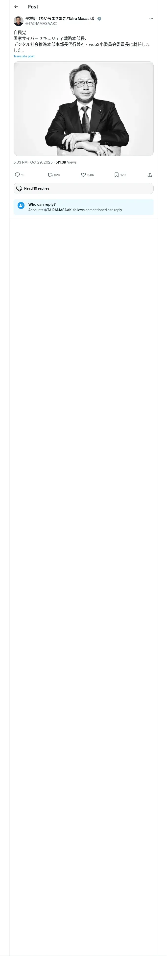 取得元URL: https://x.com:443/TAIRAMASAAKI/status/1983444575730708691