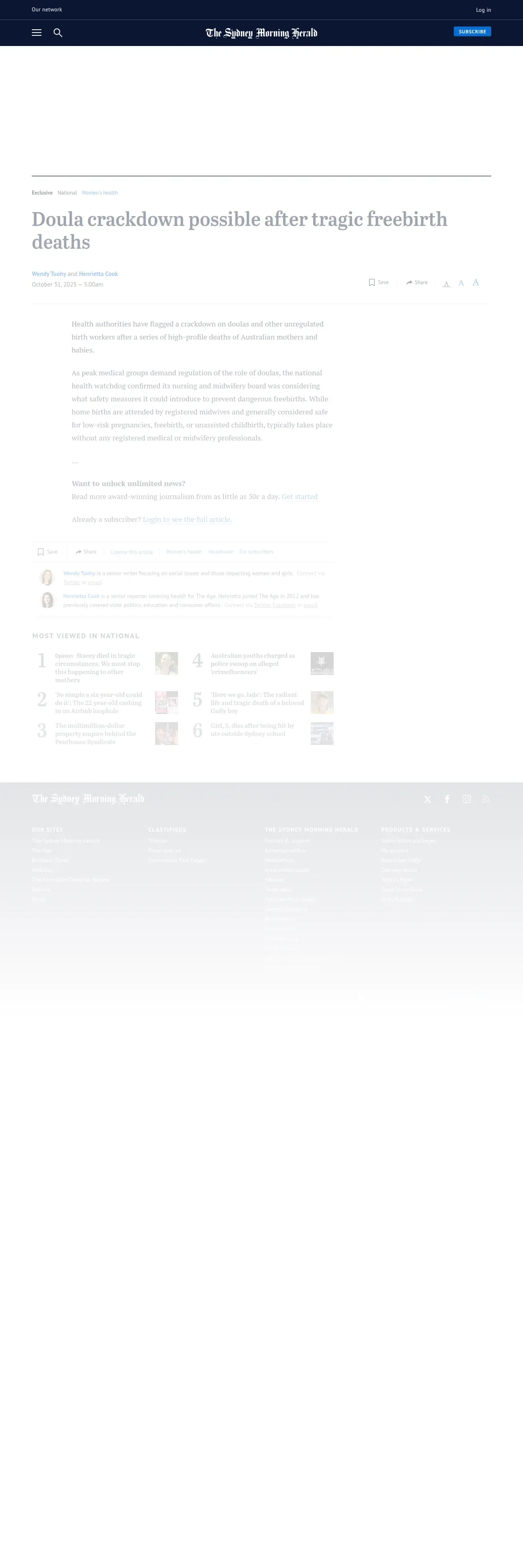 https://www.smh.com.au:443/national/doula-crackdown-possible-after-tragic-freebirth-deaths-20251029-p5n6by.html