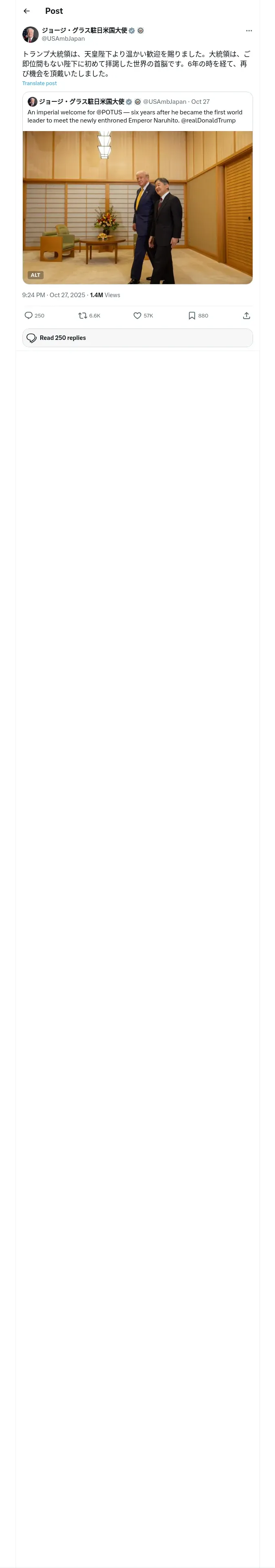 https://x.com:443/USAmbJapan/status/1982785459185992091