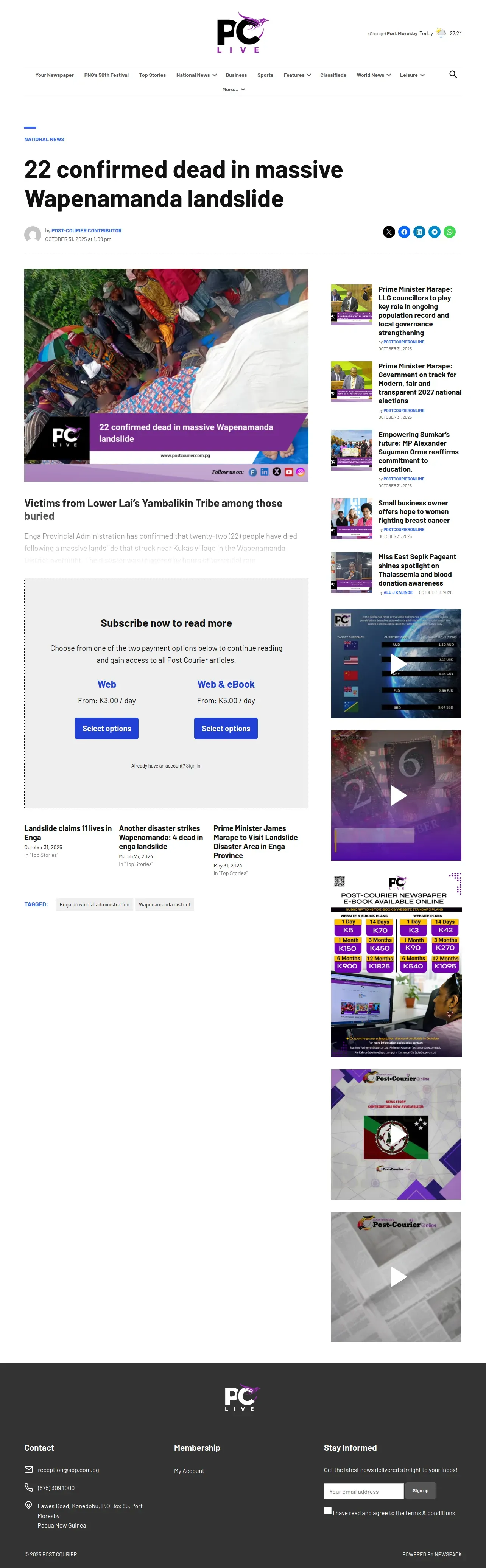 取得元URL: https://www.postcourier.com.pg:443/22-confirmed-dead-in-massive-wapenamanda-landslide/