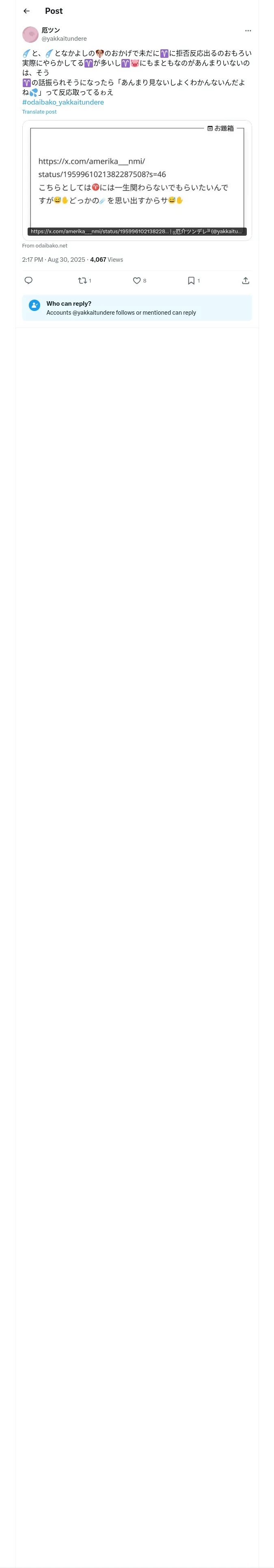 https://x.com:443/yakkaitundere/status/1961659414630531490