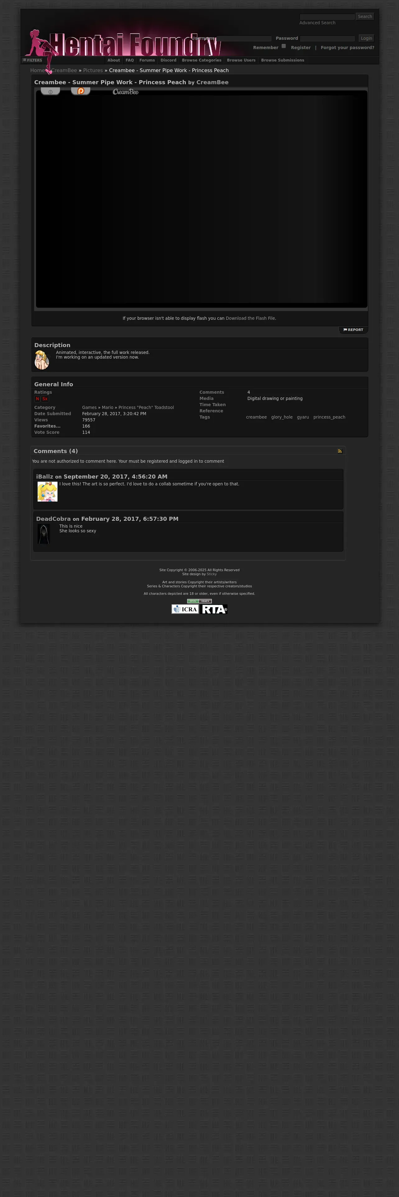 https://www.hentai-foundry.com:443/pictures/user/CreamBee/492549/Creambee---Summer-Pipe-Work---Princess-Peach?enterAgree=1&size=1550