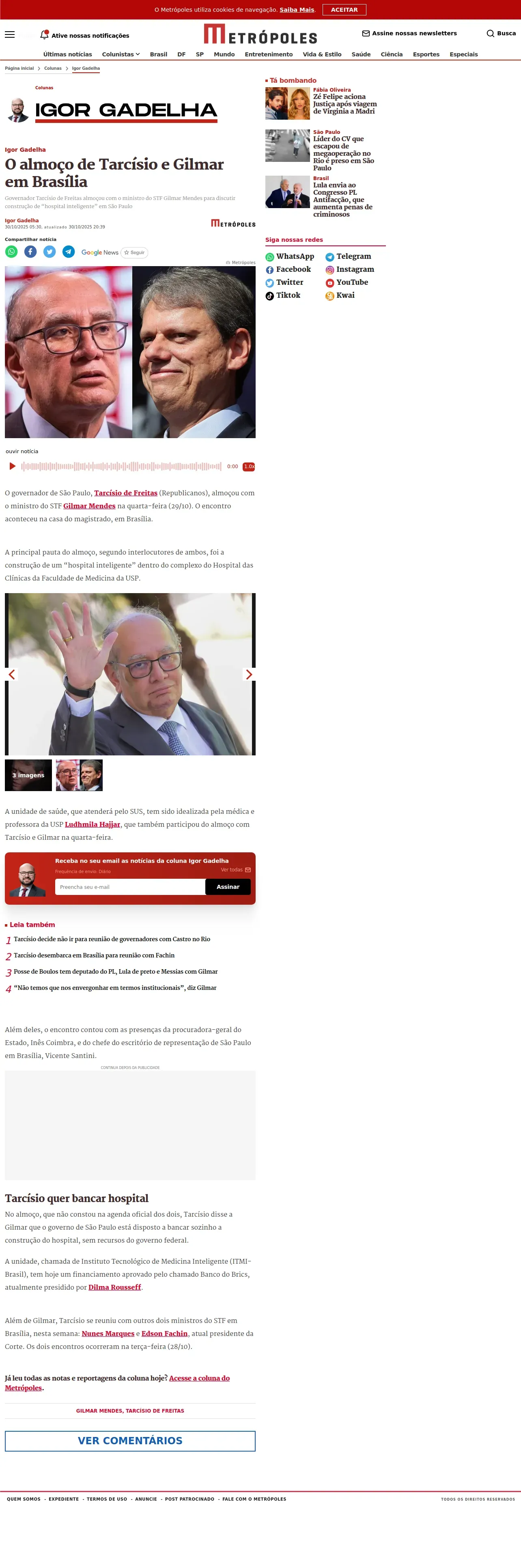 https://www.metropoles.com:443/colunas/igor-gadelha/o-almoco-de-tarcisio-e-gilmar-em-brasilia