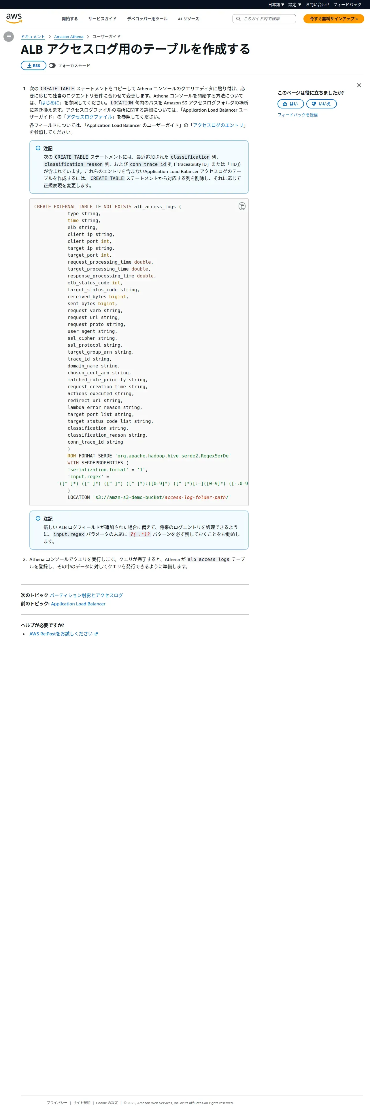 https://docs.aws.amazon.com:443/ja_jp/athena/latest/ug/create-alb-access-logs-table.html