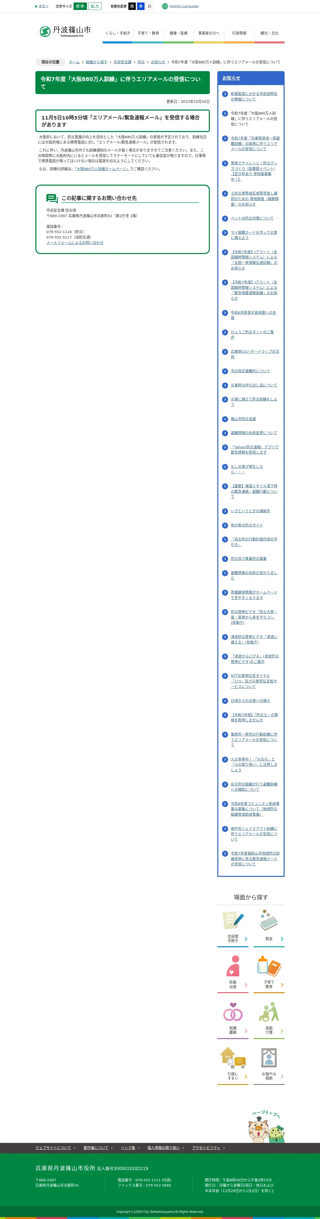 https://www.city.tambasasayama.lg.jp:443/soshikikarasagasu/shiminanzenka/bousai/oshirase/14799.html