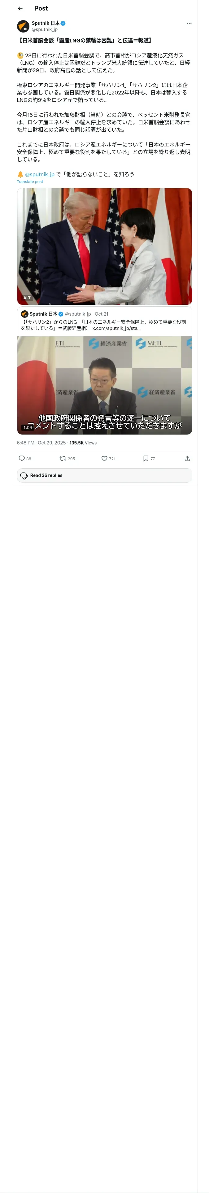 https://x.com:443/sputnik_jp/status/1983470912964874485