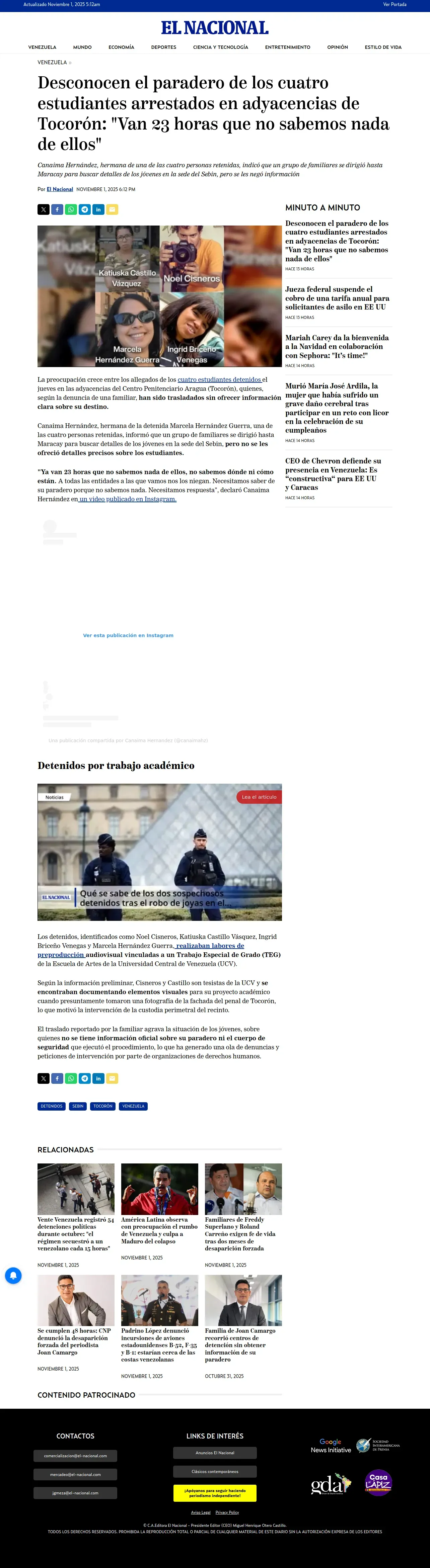 https://www.elnacional.com:443/2025/11/desconocen-el-paradero-de-cuatro-estudiantes-arrestados-en-tocoron/