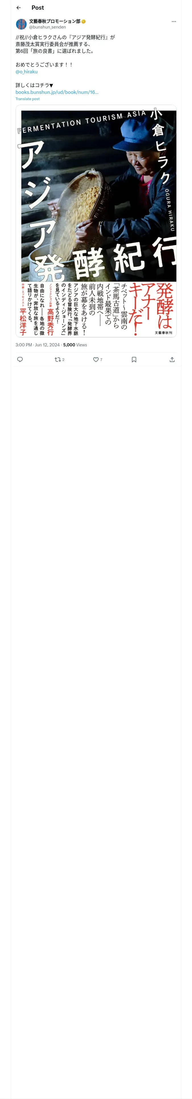 https://x.com:443/bunshun_senden/status/1800770003798777884