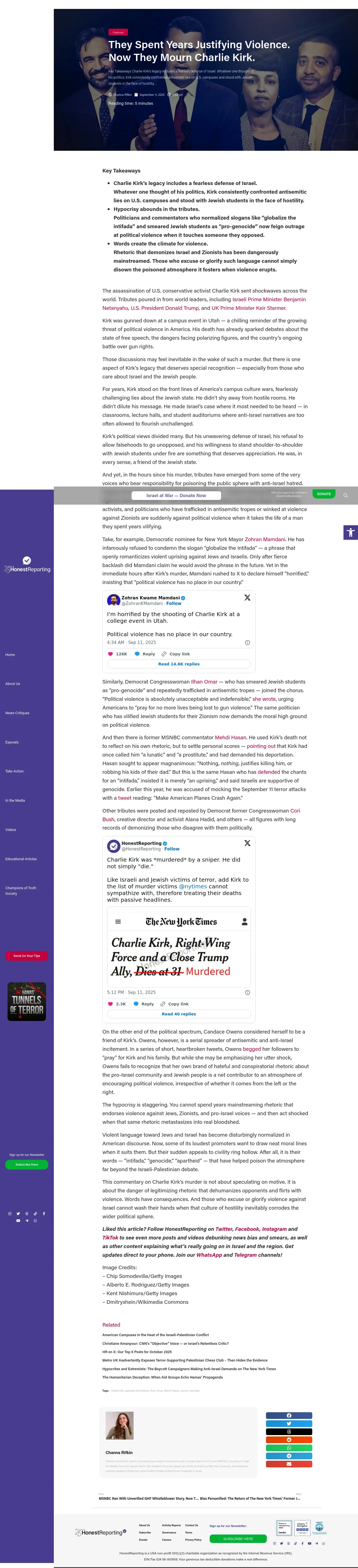 https://honestreporting.com:443/they-spent-years-justifying-violence-now-they-mourn-charlie-kirk/