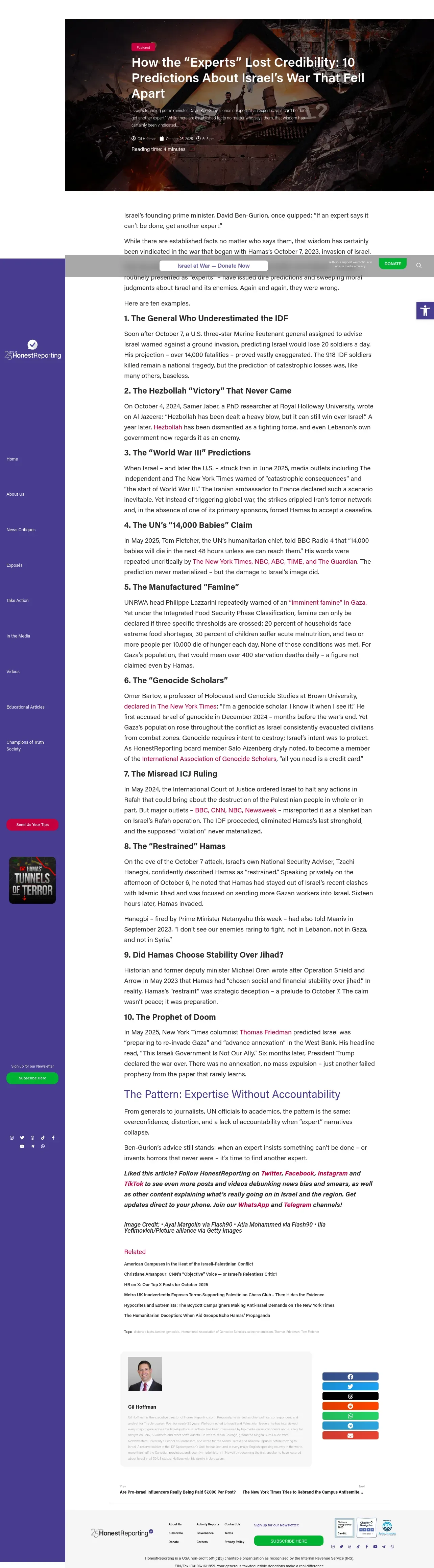 https://honestreporting.com:443/how-the-experts-lost-credibility-10-predictions-about-israels-war-that-fell-apart/