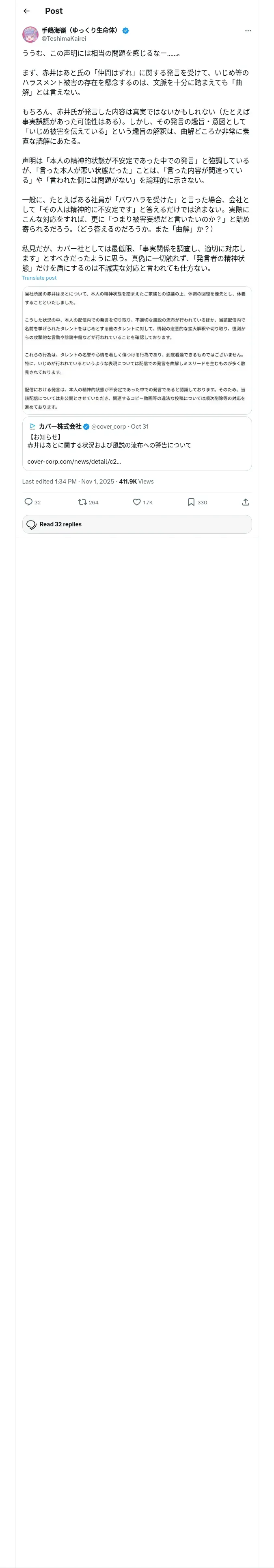 https://x.com:443/TeshimaKairei/status/1984479013436604800