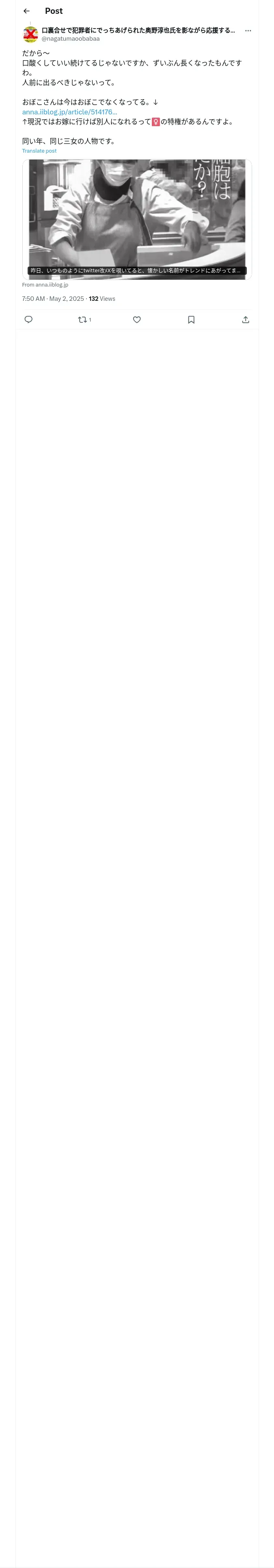 https://x.com:443/nagatumaoobabaa/status/1918075632950624367
