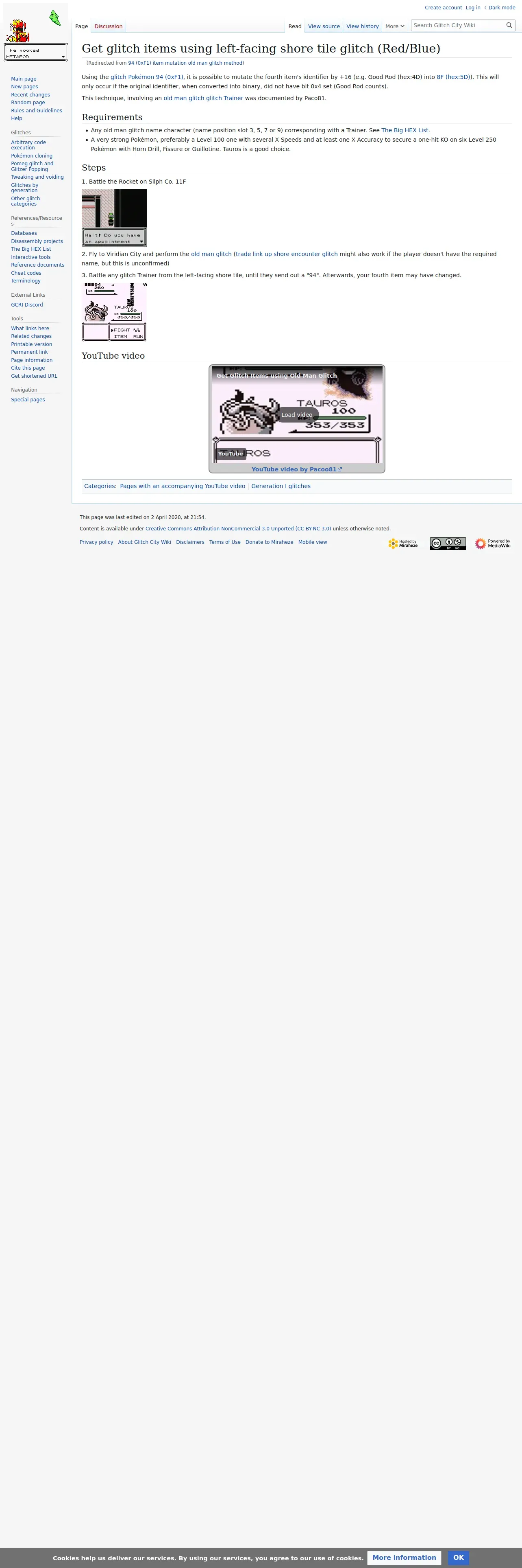 http://glitchcity.wiki/wiki/94_(0xF1)_item_mutation_old_man_glitch_method