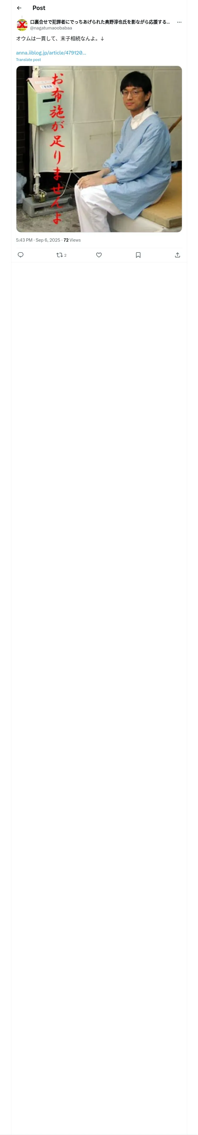取得元URL: https://x.com:443/nagatumaoobabaa/status/1964247984746746004